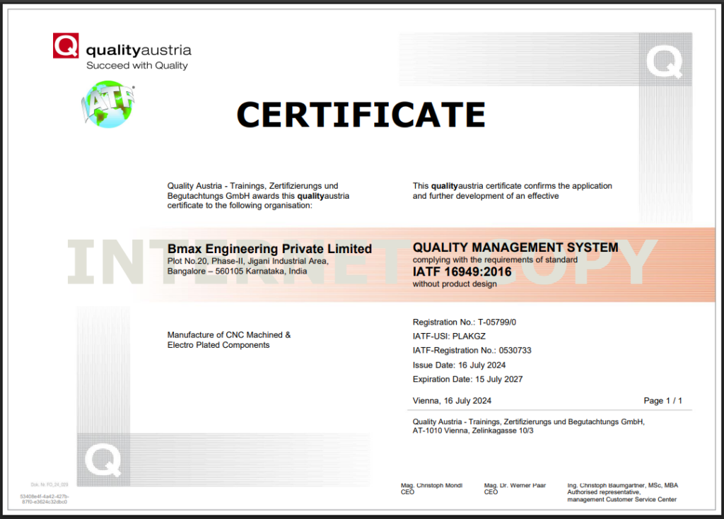 The Company was established in 1996 as Bangalore Matics Pvt.Ltd. & later name changed to BMAX Engineering Pvt. Ltd. We are into manufacturing of Precision Turned Components including various types of D.V. Holders for BOSCH which are used in their Fuel Injection Pumps for Diesel Vehicles.